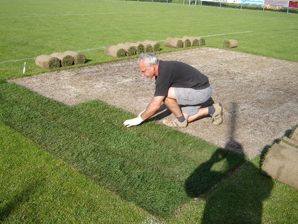 Unsere Platzwärte beim Einsetzten eines Rollrasens