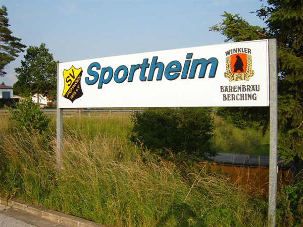 Sportheim-Schild am Parkplatz 2013